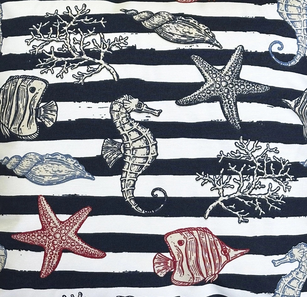 Modelo: Desenhos fundo do mar com listras cor azul marinho.